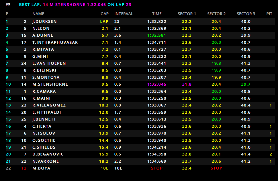 Joshua Durksen, never really under pressure, manages to keep the lead and wins the race. Behind him, Noel León and Alex Dunne complete the podium after a fierce battle all the way to the checkered flag.