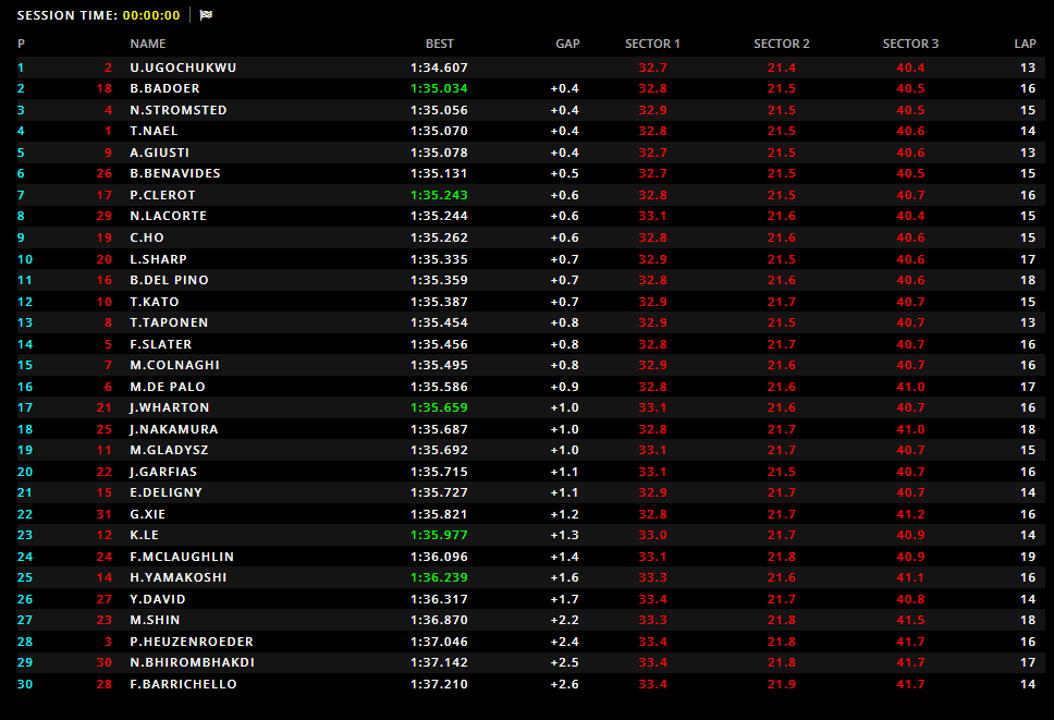 At the end of the session, Ugo Ugochukwu set the fastest time. The Campos driver finished ahead of Brando Badoer and Noah Stromsted, who completed the top three in this first session of the season.