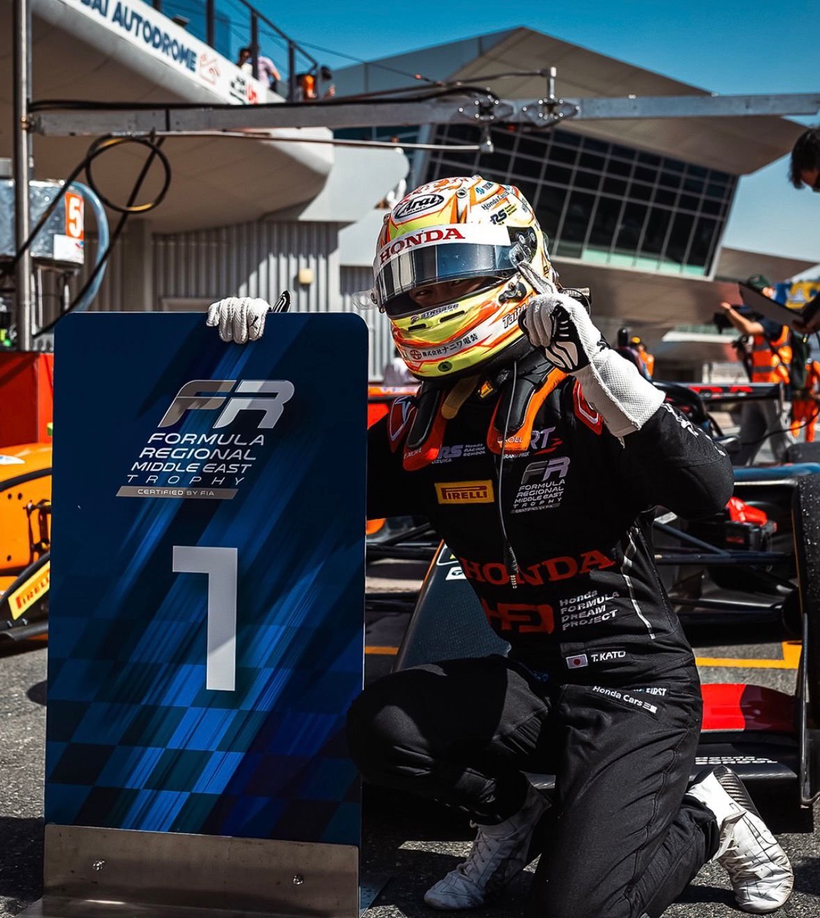 At the start of Race 1, Kato got off to a perfect launch and retained the lead, immediately setting a strong pace. Behind him, the fight for the podium was intense, with a huge battle between Kean Nakamura-Berta and Rashid Al Dhaheri, the main title favourite, for third place. Meanwhile, the pack remained extremely close, producing numerous wheel-to-wheel battles.