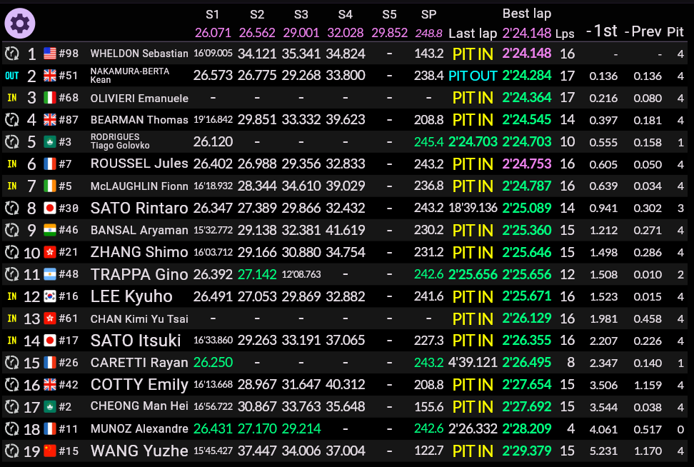 As in F4, the session was marked by several red flags, disrupting the attempts and making session management even more complicated. Charlie Wurz, Jose Garfias and Tymek Kucharcyzk have crashed during the session, whereas Oscar Wurz and Zhenrui Chi were not able to take part in the session due to a massive crash in Free Practice 2.