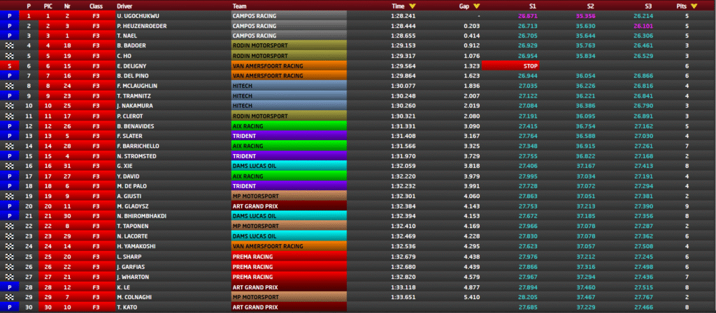 Just behind him, Patrick Heuzenroeder, replacing Ernesto Riveira, secured second place, followed by Théophile Naël, highlighting the strong performance from Campos Racing.