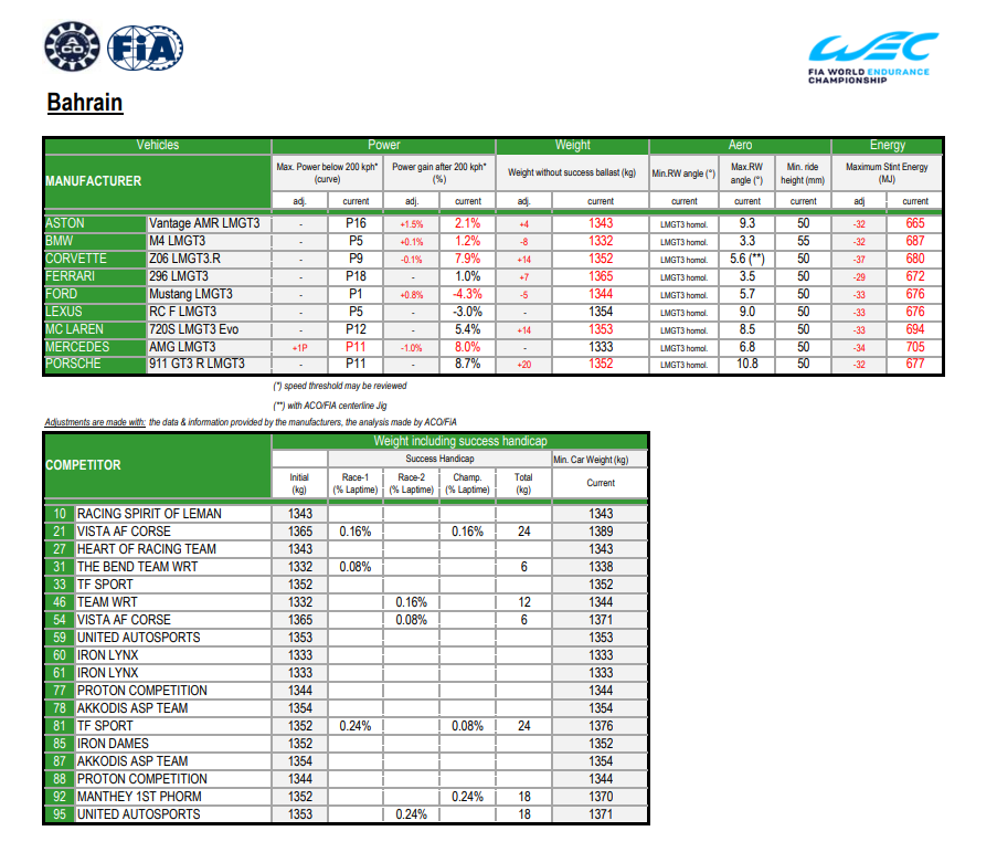 Aston Martin Vantage GT3: Small power reduction → relies on smooth driving and corner exits